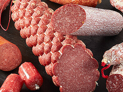 VEMAG пропонує широкий асортимент машин, призначених для вирішення різних завдань по наповненню. Незалежно від того, чи це порційні продукти малого калібру, такі як варені ковбаси, чи продукти великого калібру, такі як варена шинка або нарізані солоні продукти, або альгінатні розчини, у VEMAG є відповідні машини для наповнення зі збереженням структури продукту. Ці машини забезпечують надзвичайно високу продуктивність, що робить їх ідеальними для таких продуктів, як салямі та інших нарізаних ковбасних виробів. Машини VEMAG забезпечують ефективні та якісні процеси наповнення, дозволяючи виробляти різноманітні продукти.